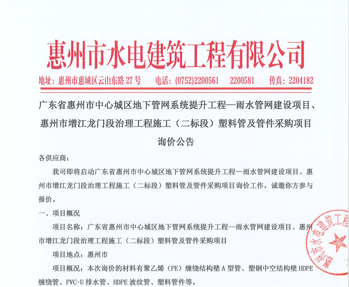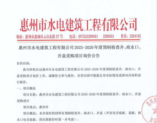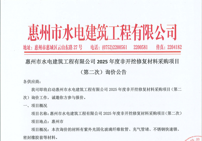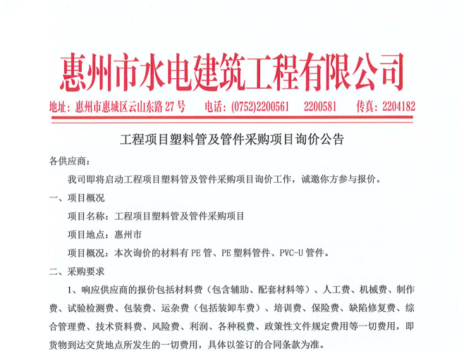 惠州市水電建筑工程有限公司成立于一九六四年四月,隸屬惠州市水務集團有限公司,是一家國有綜合性施工企業,主營水利水電工程、房屋建筑、市政工程等施工業務。公司擁有水利水電工程施工總承包一級、建筑工程施工總承包一級、市政公用工程施工總承包一級、公路工程施工總承包三級,公路路基、路面及建筑裝修裝飾專業承包二級,環保工程、機電安裝、河湖整治、輸變電工程專業承包三級等經營資質……